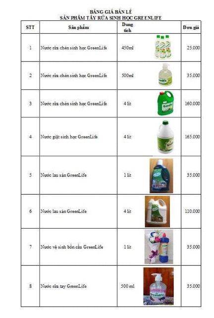 1. Nước rửa chén không mùi: 160.000/can 4 lít; 25.000/chai 450ml