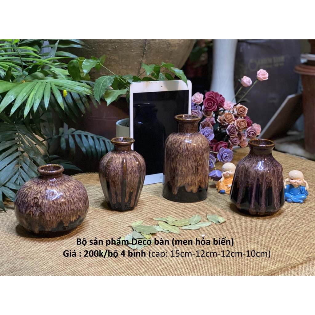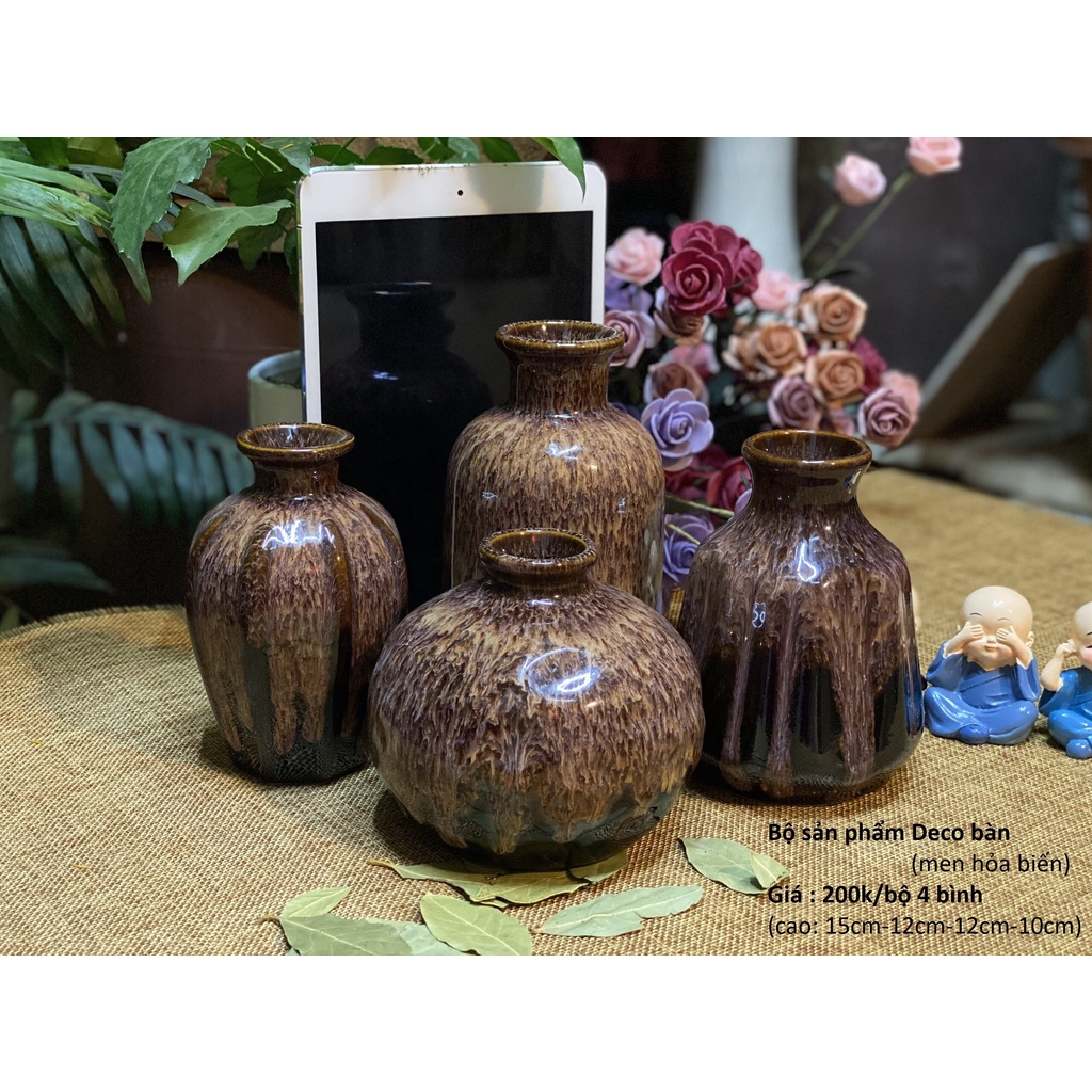 -Tên sản phẩm : Bộ 4 bình decor cắm bàn - men hỏa biến-Chiều cao bình : 15cm - 12cm - 12cm - 10cm