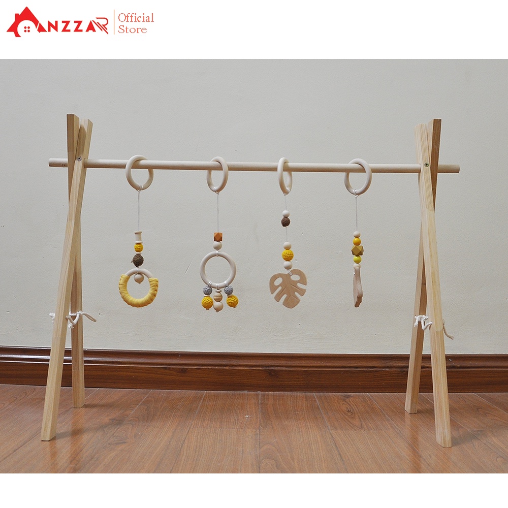 Giới thiệu Bộ 4 móc treo đồ chơi gỗ treo nôi gắn kệ chữ A cho bé Anzzar