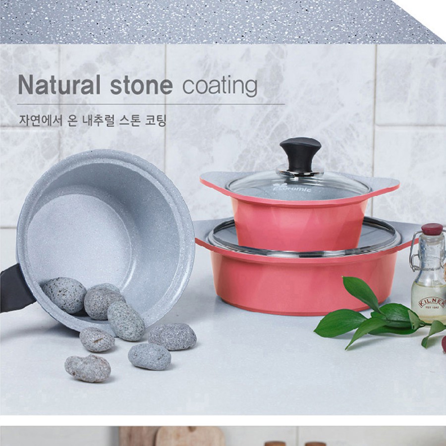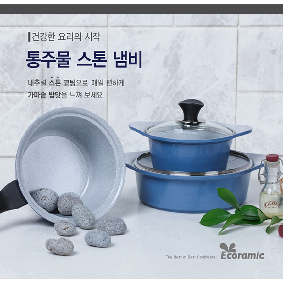 Bộ nồi chảo chống dính ceramic vân đá 3D ECORAMIC.
