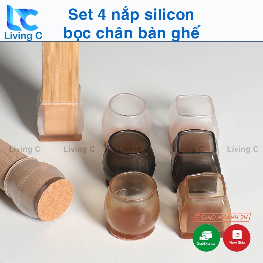 Bộ 4 silicon bọc chân bàn ghế chống va đập trơn trượt Living C, bọc chân bàn ghế silicon loại dày cao cấp _BCB