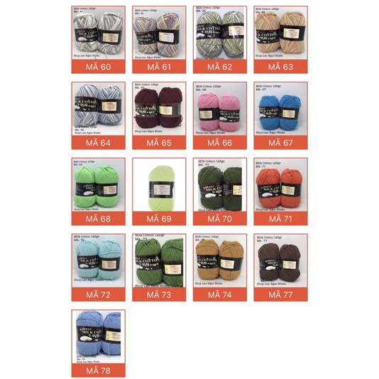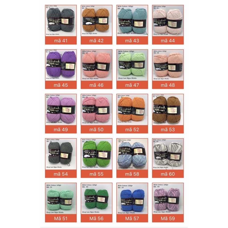 Len Cotton Milk 125gr loại 1 - bảng màu từ 40 đến 80Len Cotton Milk 125gr là dòng len quốc dân chất lượng tốt , giá bình dân .