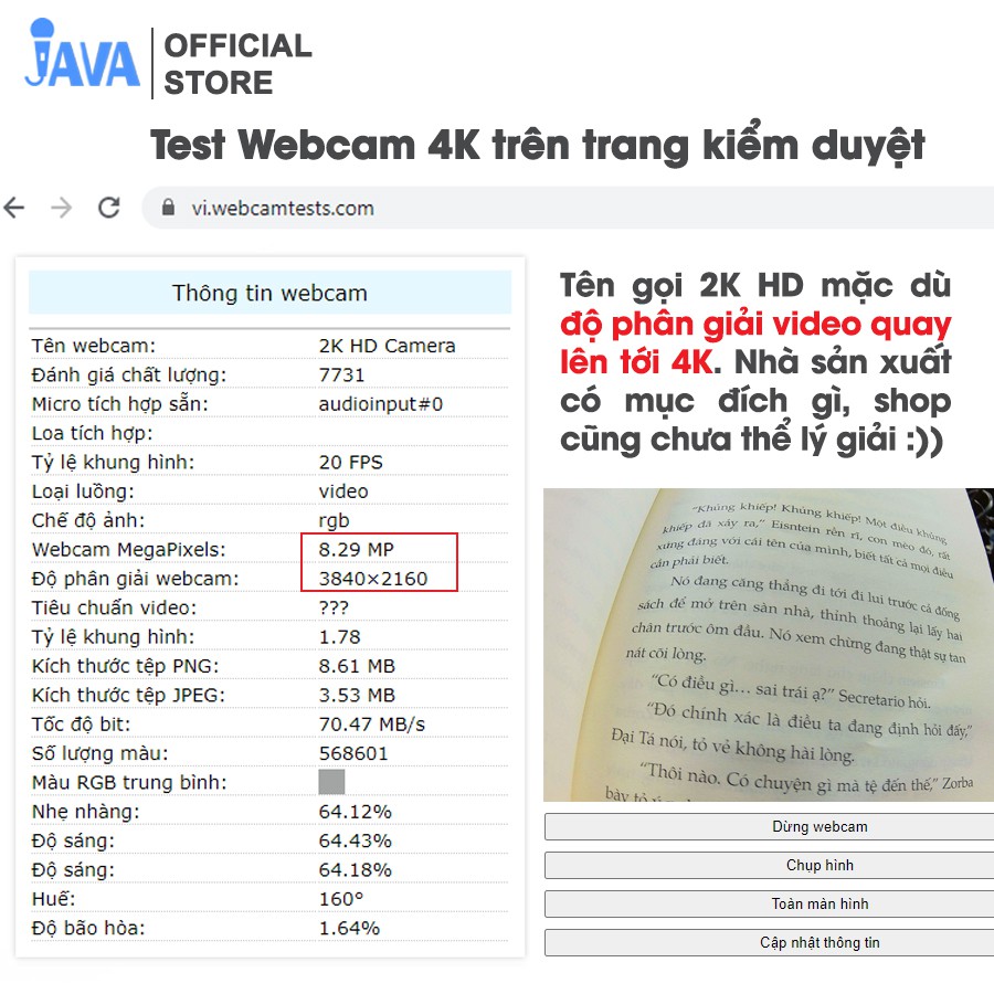 ⚫ THÔNG SỐ Webcam máy tính 4K (có ảnh thật) ⚫:
