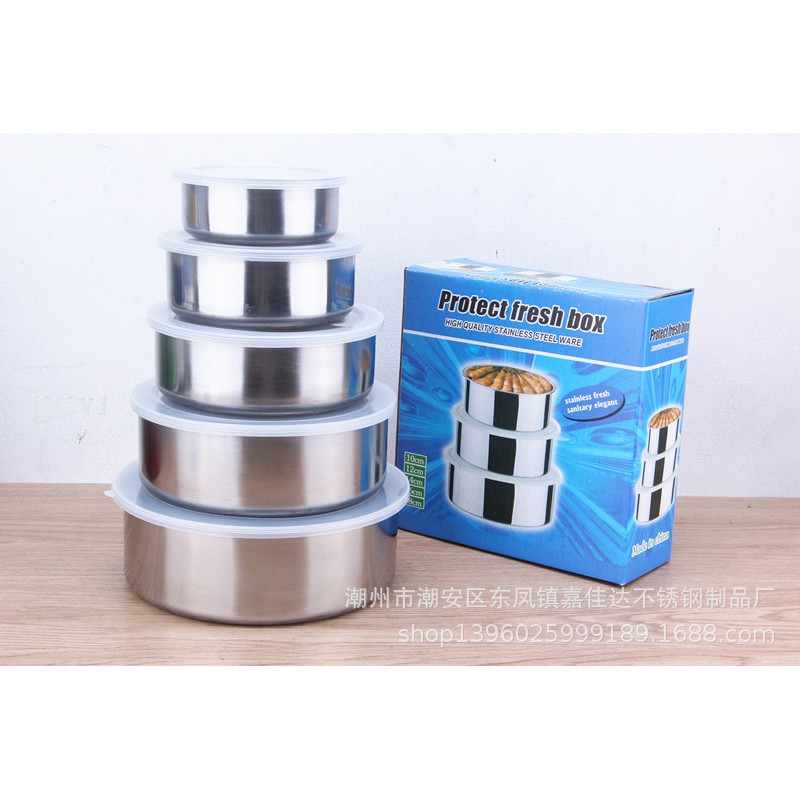 Nhà cửa & Đời sống > Bộ đồ bàn ăn > Tô || Bộ 5 bát inox có lắp đậy đồ dùng cho nhà bếp phòng ăn GD26Còn hàng