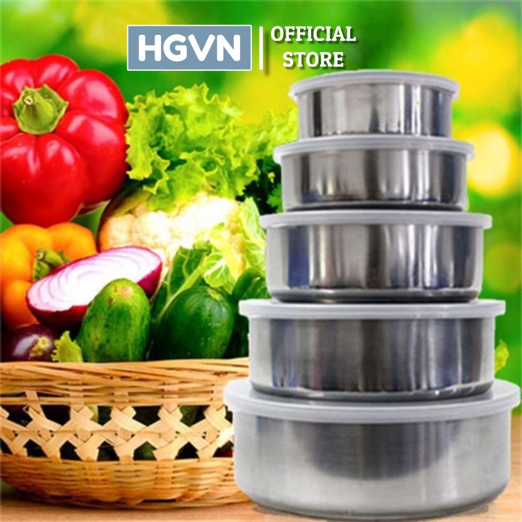 Bộ 5 Bát INOX Đựng Thực Phẩm Cao Cấp Có Nắp Đậy Tiện Lợi