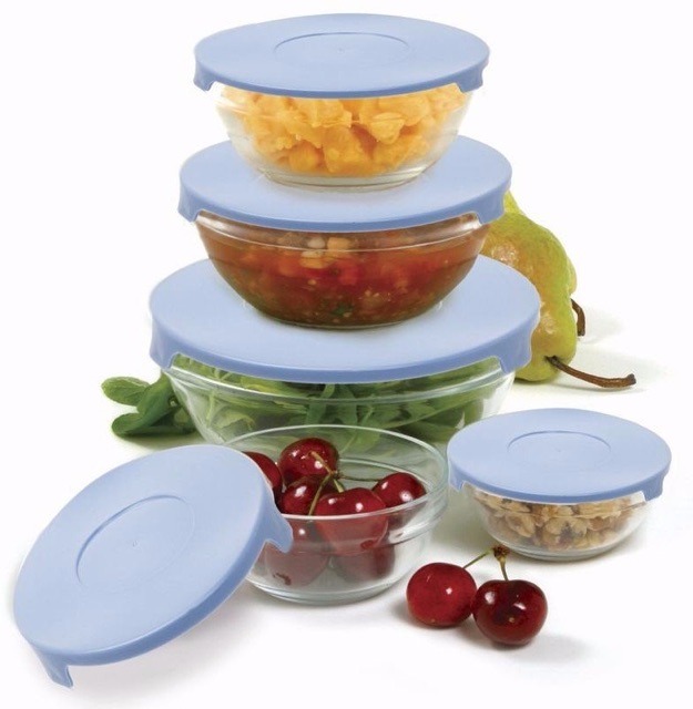 Không chỉ giúp trình bày món ăn thêm đẹp mắt, đồ thủy tinh còn có tác dụng giữ cho thực phẩm tươi ngon lâu hơn. Đặc biệt, đồ thủy tinh không gây phản ứng hóa học trong suốt quá sử dụng, luôn sáng bóng lại dễ dàng tẩy rửa…Chính vì những ưu điểm nổi trội trên, đồ thủy tinh đã trở thành “trợ thủ” đắc lực để các chị em giữ lửa hạnh phúc gia đình qua từng bữa ăn ngon! Vậy hãy lựa chọn Bộ 5 bát thủy tinh có nắp đậy Cooking Bowl gồm nhiều kích thước với mức giá ưu đãi nhất tại Hot.vn!Bộ gồm 5 bát thủy tinh với 5 nắp nhựa tương ứng: