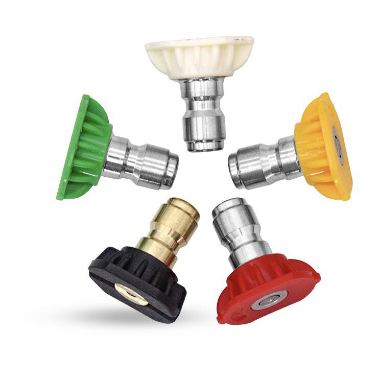 Nhà cửa & Đời sống > Dụng cụ & Thiết bị tiện ích > Dụng cụ > Máy rửa áp lực nước || Bộ 5 béc phun-đầu béc gắn súng xịt rửa của máy rửa xe áp lực cao-Ren nối nhanh 1/4 inchCòn hàng