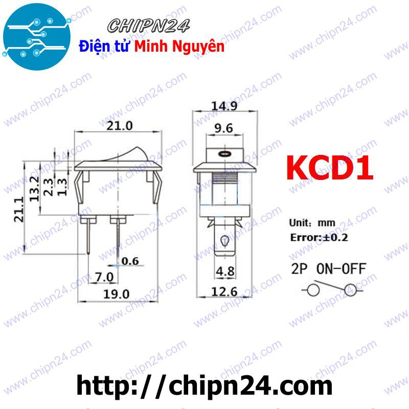Công tắc KCD1 ĐENCông tắc bập bênh 2 chân 6A 250VAC
