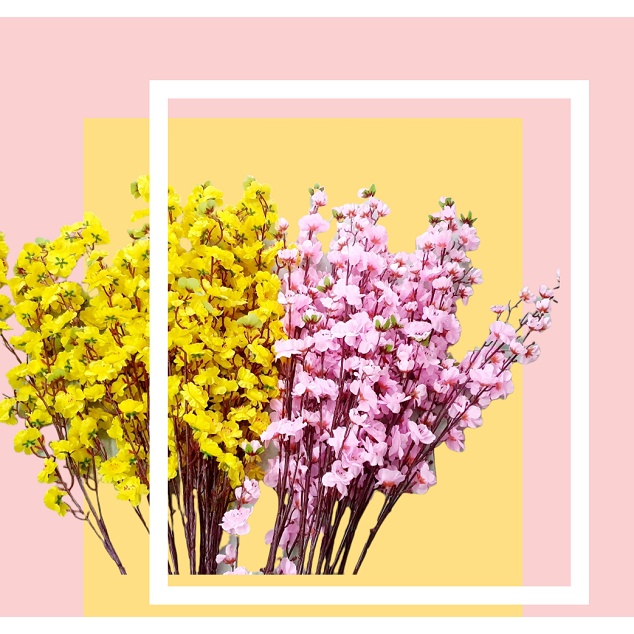 Nhà cửa & Đời sống > Trang trí nhà cửa > Hoa trang trí || 5 cành mai, cành đào lụa cao cấp dài 1mCòn hàng