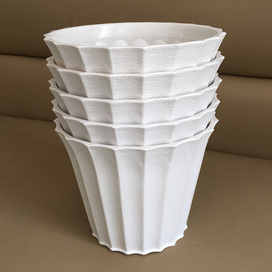 Bộ 5 chậu trồng hoa khía màu trắng đẹp size 22x18cm