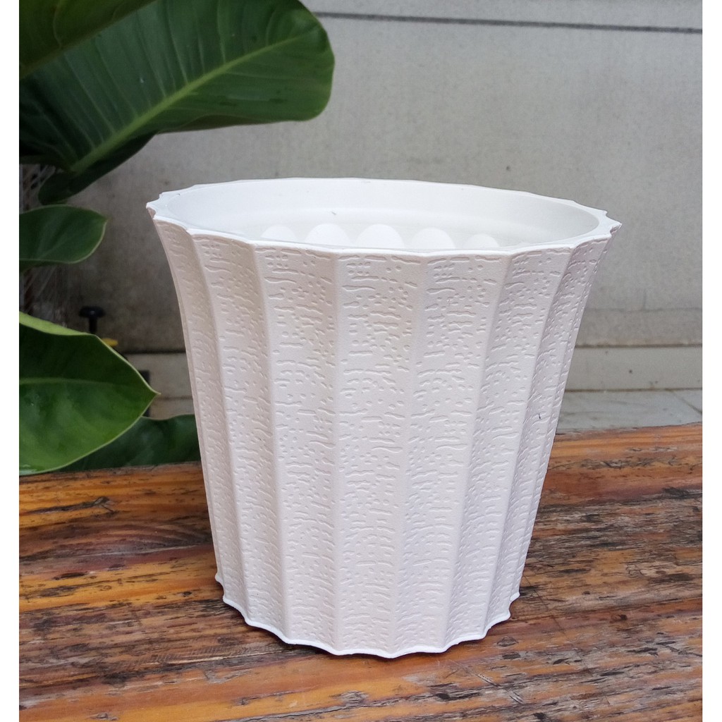 Nhà cửa & Đời sống > Làm vườn > Chậu cây || Bộ 5 chậu trồng hoa khía màu trắng đẹp size 22x18cmCòn hàng