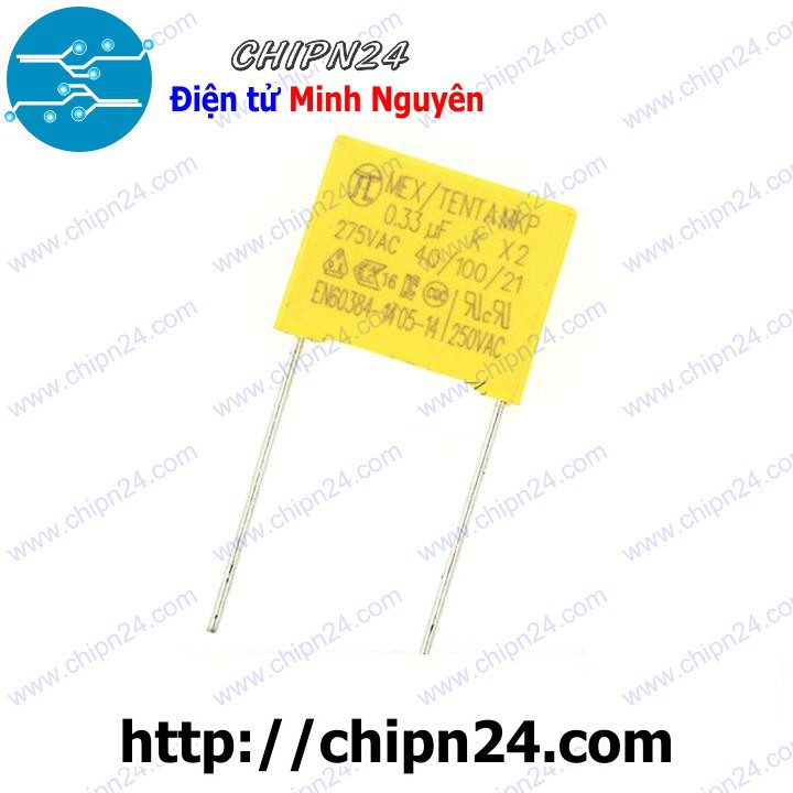 Tụ hộp 334 275VAC 15mm (0.33uF MEX/TENDA MKP K X2 40/100/21)Tụ hộp 334 275VAC 15mm (0.33uF MEX/TENDA MKP K X2 40/100/21)