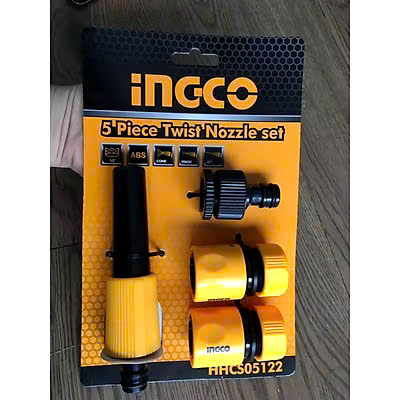 Bộ khớp 5 chi tiết nối nhanh ống nước tưới cây, cấp nước cho máy rửa xe INGCO HHCS05122 kết nối với ống nhựa dẻo PVC phi 16mm, 18mm