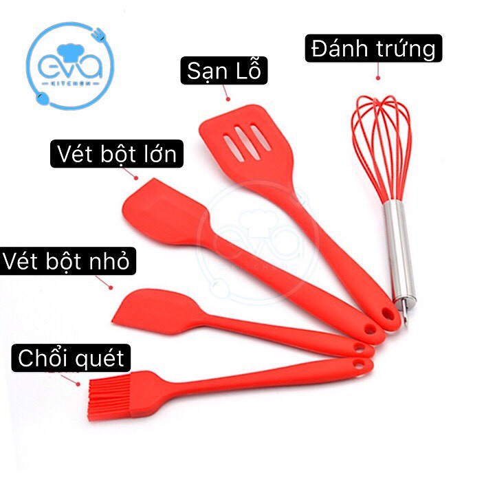 Bộ 5 Dụng Cụ Làm Bánh Cơ Bản Gồm Chổi - Vét Bột - Đánh Trứng - Xẻng SiliconeMã Sản Phẩm : 0139000268