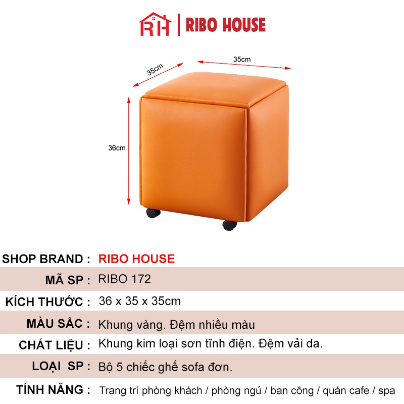 Nhà cửa & Đời sống > Nội thất > Ghế sofa || Bộ 5 ghế sofa đơn RIBO HOUSE đệm vải da ghế hình rubik trang trí phòng khách quán cà phê sân vườn RIBO172Còn hàng