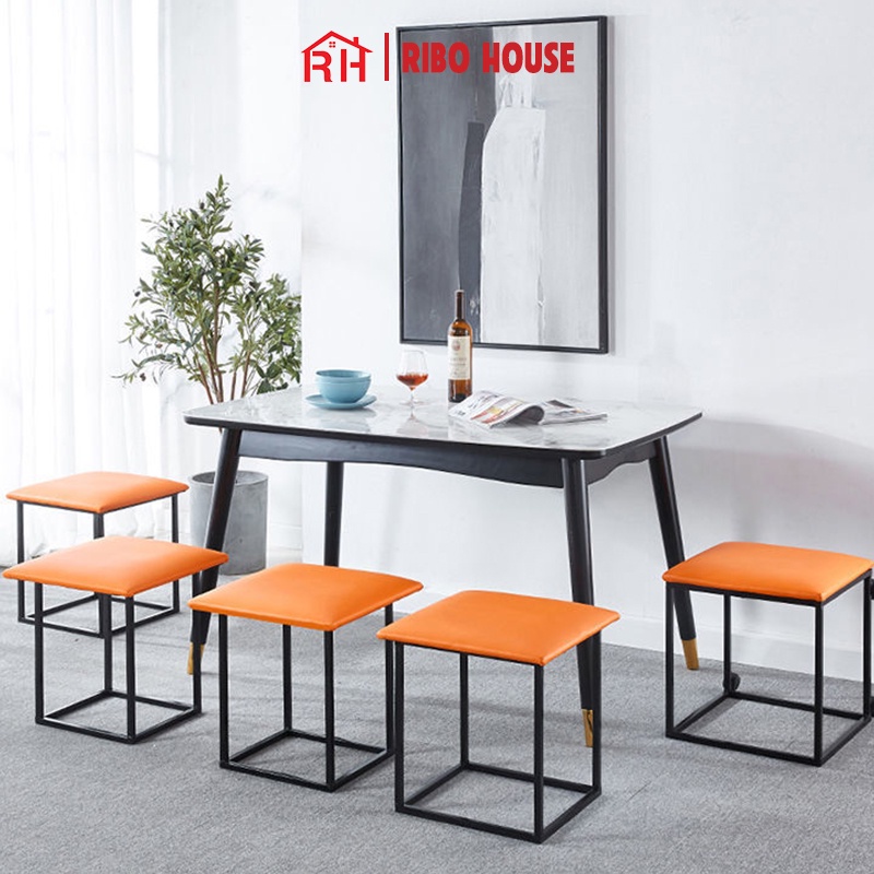 Bộ 5 ghế sofa đơn RIBO HOUSE đệm vải da ghế hình rubik trang trí phòng khách quán cà phê sân vườn RIBO172