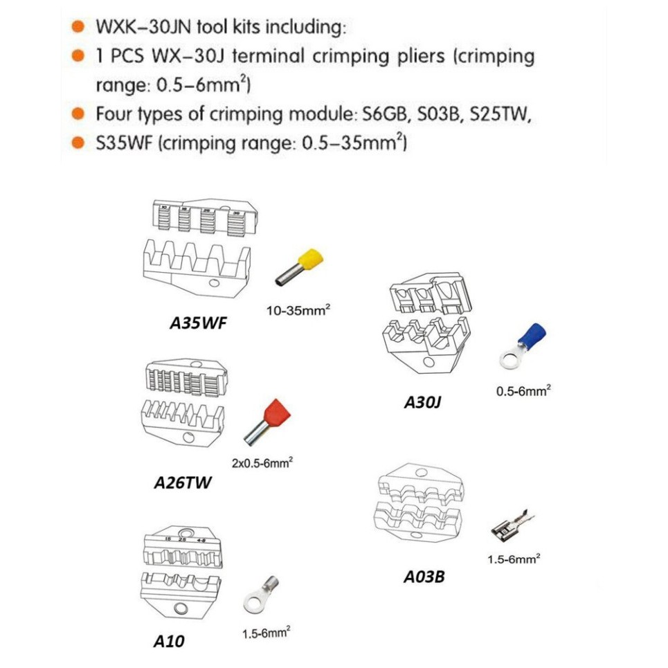 Bộ 5 kìm bấm cosKìm bấm cos bằng tay dùng để bấm các đầu cos nhỏ, cos cuốn, cos ống, cốt ghim...tiện lợi nhanh gọn, kìm bấm cos tay chắc chắn để nối các tiếp điểm mà dùng các loại kìm bình thường sử dụng không được . Với các loại kìm đủ kích cỡ thì kìm bấm cos tay có thể bấm được những dây điện ở tủ điện nhỏ hẹp.