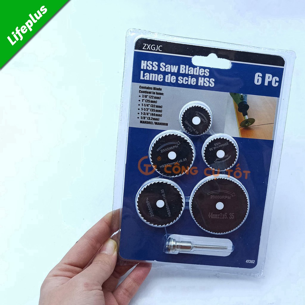 Có 5 đĩa cưa với đường kính đa dạng: 22, 25, 32, 35, 44mm