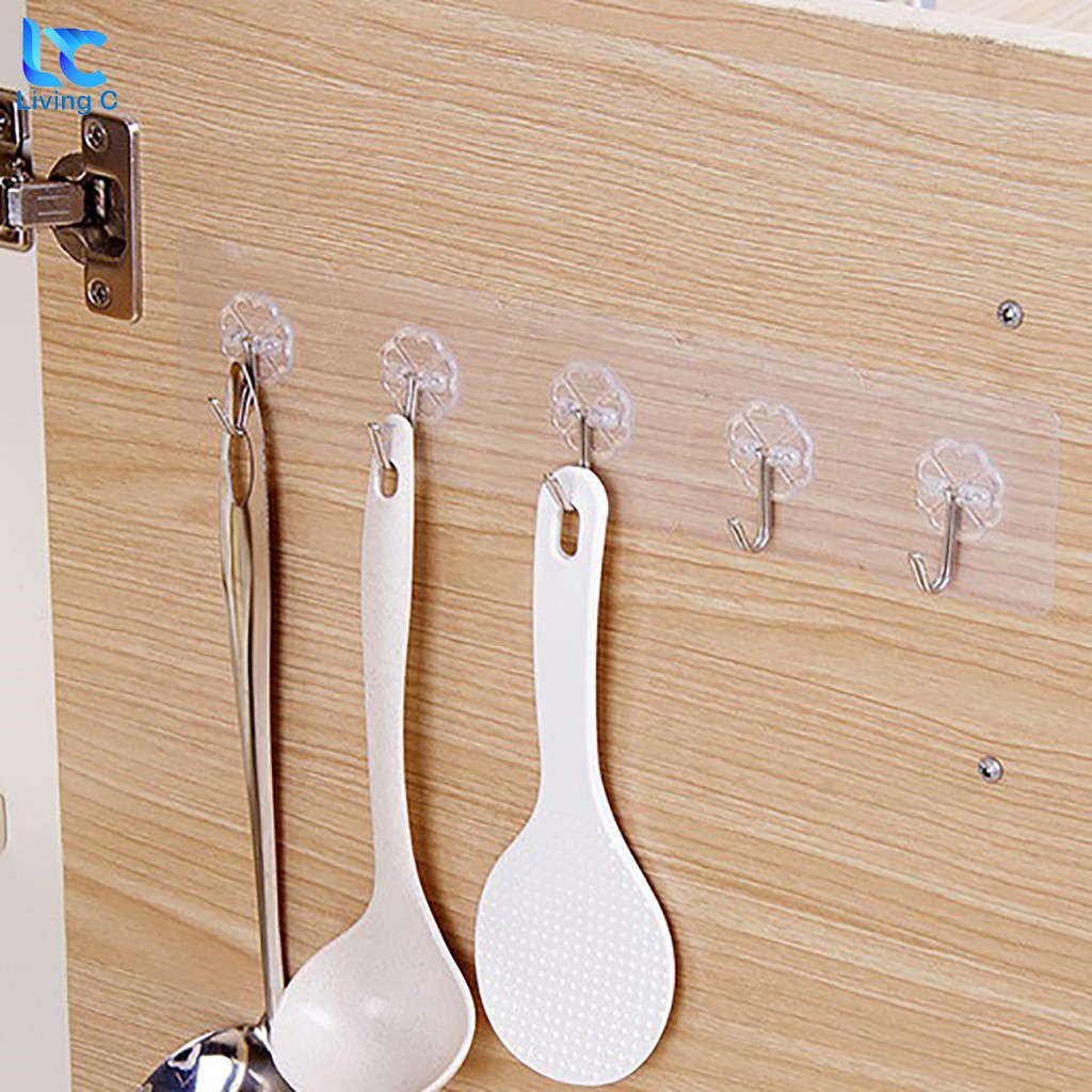 Thanh 5 móc treo đồ dán tường siêu dính chịu lực đa năng chống thấm Living C _5M