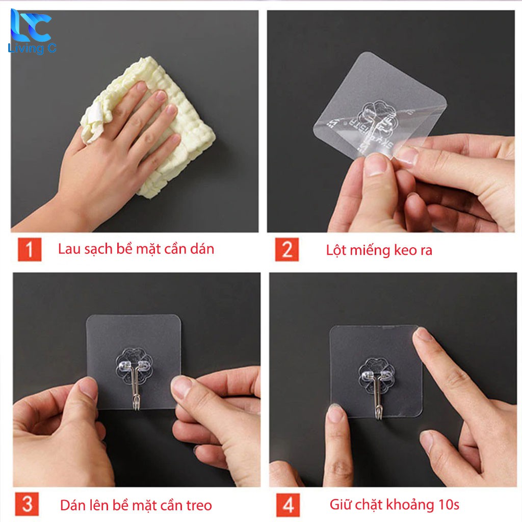 Thanh 5 móc treo đồ dán tường siêu dính chịu lực đa năng chống thấm Living C _5M* CAM KẾT TỪ SHOP: