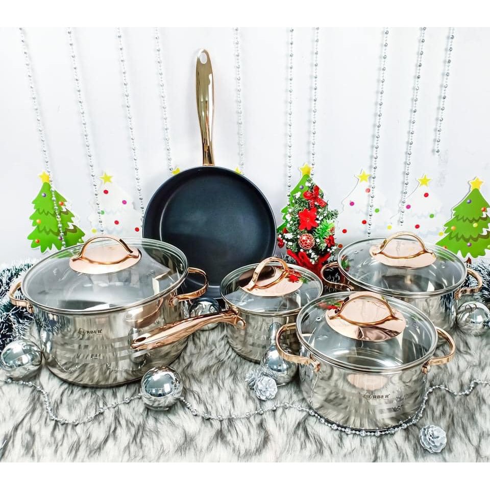 Bộ nồi từ chảo 5 chiếc cao cấp ARBER làm bằng chất liệu thép không gỉ, đáy bộ nồi 3 đáy siêu bền khi sử dụng, bộ nồi tiếp xúc nhiệt nhanh, êm, tản nhiệt đều khi nấu. Bộ nồi từ 5 chiếc cao cấp ARBER❌❌Bộ sản phẩm bao gồm: