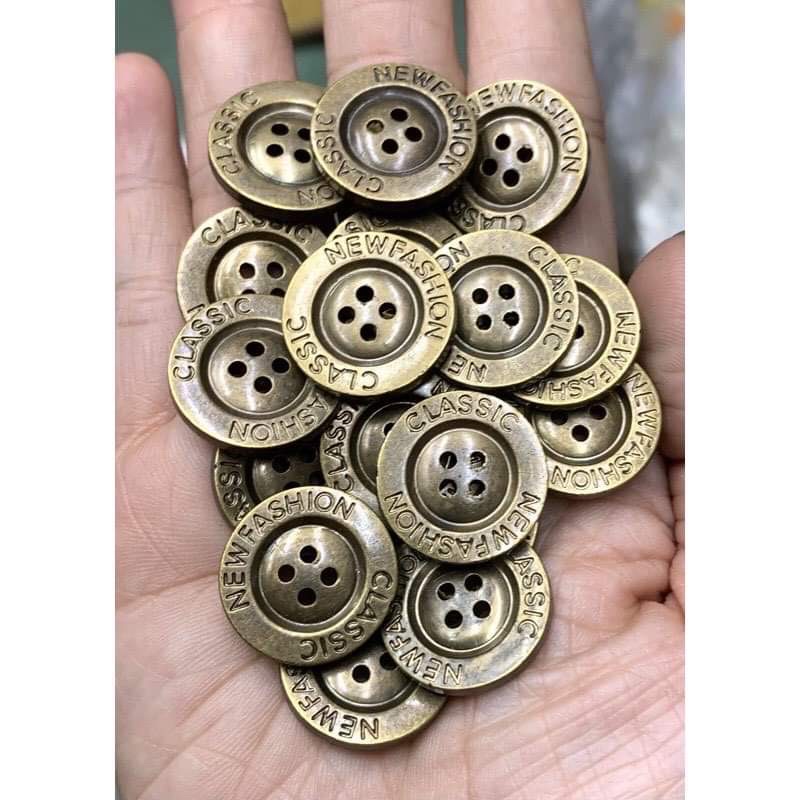 Nút giả đồng 4 lỗ size 15mm dùng đơm áo sơ mi jean, áo sơ mi kiểu bụi bụi.Nút 18mm có thể không đơm áo khoác, áo đầm jean, linen, chất liệu bụi bụi.