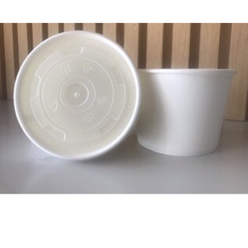 50 bát giấy 1000ml màu trắng. Tô giấy trắng 1 lít kèm nắp