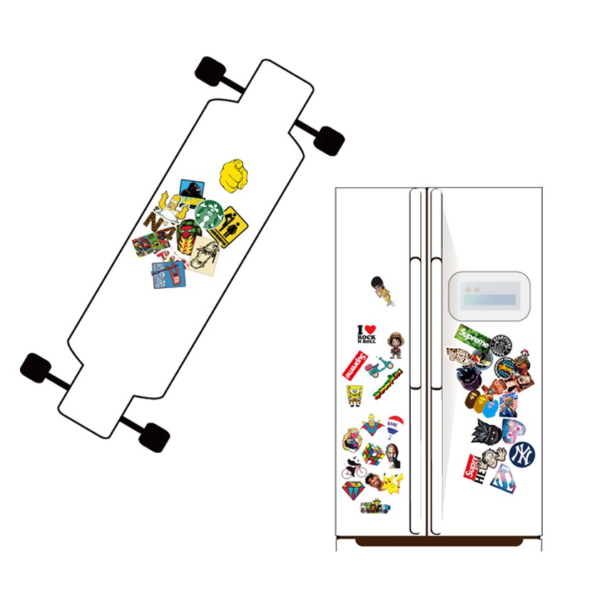 Hình dán dùng để dán, trang trí cho: laptop, mũ bảo hiểm, nhạc cụ, xe đạp, xe máy, ô tô, vali, bàn học, tường, tủ lạnh, ván trượt...