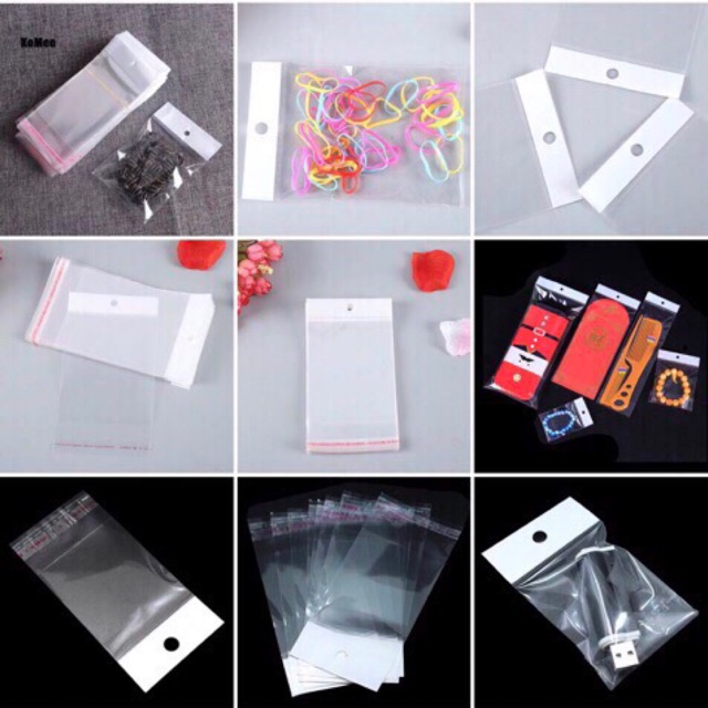Giới thiệu 50 túi dán miệng size nhỏ có màng ngọc ( lỗ ) treo phụ kiện