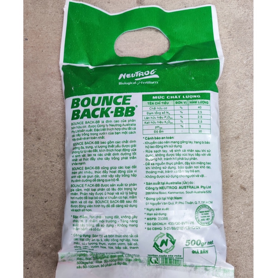 (500g) Phân Hữu Cơ Dynamic Úc Bounce Back, Hữu Cơ BB chuyên dùng rau màu, cây kiểng (hữu cơ cá và thực vật)
