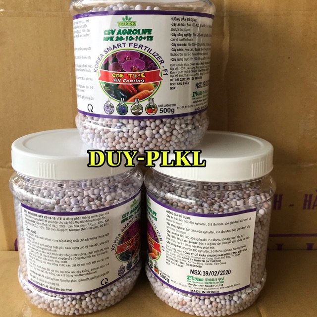 500gr - PHÂN TAN CHẬM HÀN QUỐC : NPK 20-10-10 + TE CSV - AGROLIFE