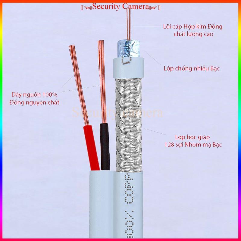 - Dây cáp đồng trục kèm dây nguồn là 1 hệ thống dây đã bao gồm dây cáp đồng trục truyền tín hiệu và dây nguồn hỗ trợ truyền tải tín hiệu và cấp nguồn cho camera.- Cáp đồng trục RG59 kèm 2 sợi dây nguồn