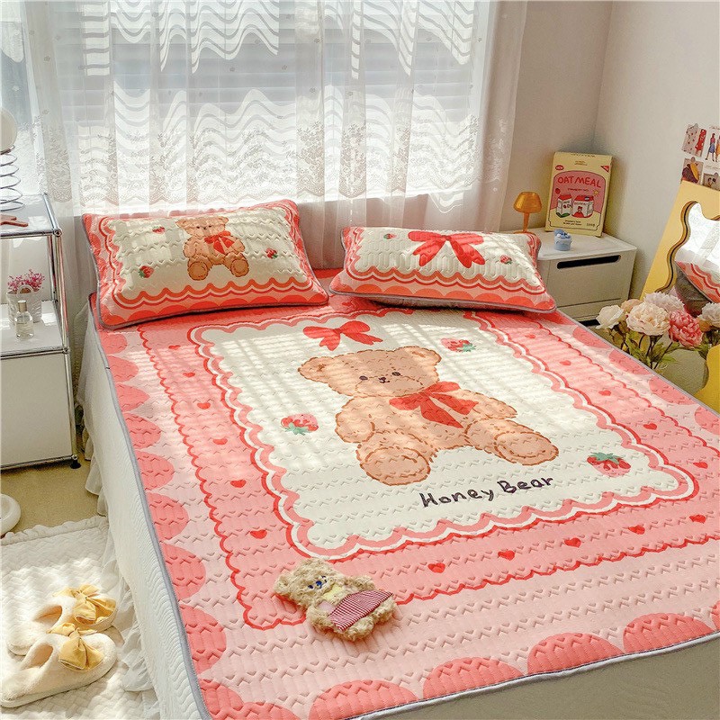 Nhà cửa & Đời sống > Chăn ga gối nệm > Chiếu điều hòa || [ 5D HOẠ TIẾT] Bộ Chiếu Điều Hoà Kèm 2 Vỏ Gối Cao Su 5D Hoạ Tiết Mẫu GẤU HỒNGCòn hàng