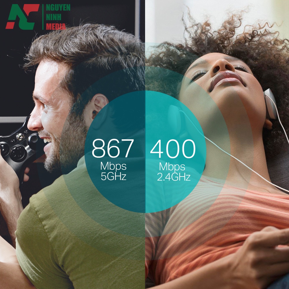 Tốc độ Wi-Fi siêu nhanh – tốc độ Wi-Fi lên tới 1300Mbps (400Mpbs trên băng tần 2.4GHz và 867Mbps trên băng tần 5GHz) hỗ trợ chuẩn Wi-Fi thế hệ mới 802.11ac