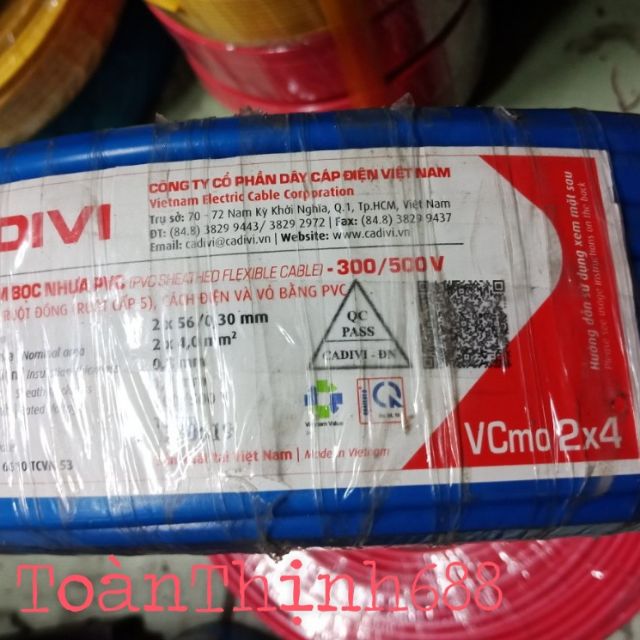 Thiết Bị Điện Gia Dụng > Mạch điện & Phụ tùng > Ổ cắm điện & Dây nối || 5m dây điện đôi 2x4.0 cadivi - 2 lớp vỏ bọc VCmo2x4.0Còn hàng