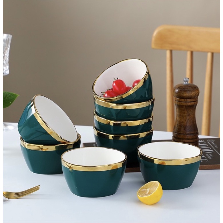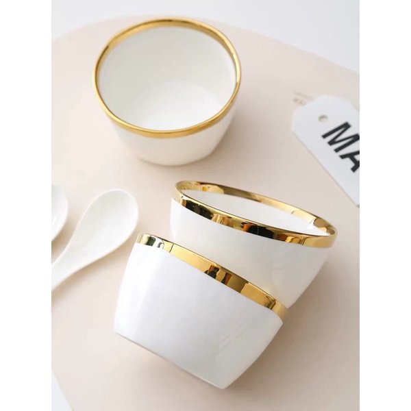 Nhà cửa & Đời sống > Bộ đồ bàn ăn > Tô || Bộ 6 Bát Ăn Cơm, Chén Ăn Cơm Bằng Sứ Viền Vàng Hình Trụ Tặng Kèm 6 Đôi Đũa Đen Mạ Vàng Cao Cấp Cam HomewareCòn hàng