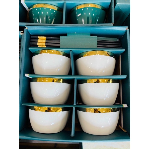 Bộ 6 Bát Ăn Cơm, Chén Ăn Cơm Bằng Sứ Viền Vàng Hình Trụ Tặng Kèm 6 Đôi Đũa Đen Mạ Vàng Cao Cấp Cam Homeware>>Cam Homeware Gửi Thông Tin Chi Tiết Về Sản Phẩm: