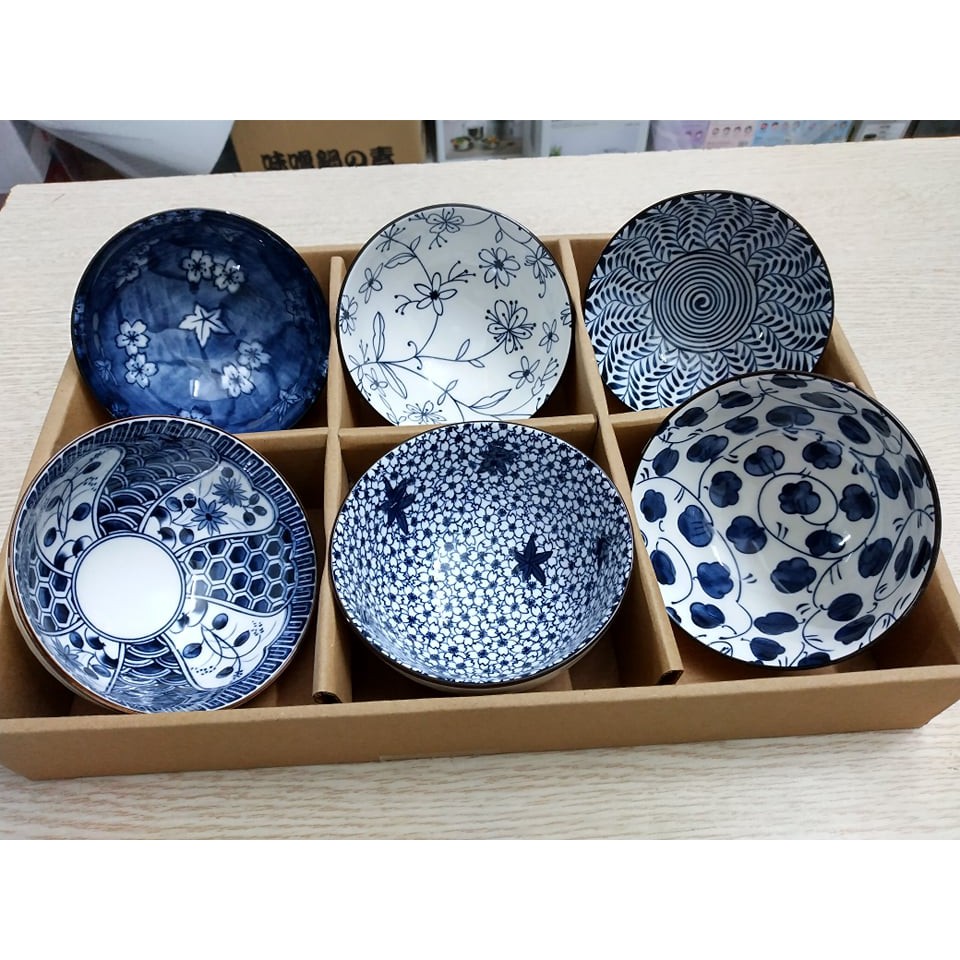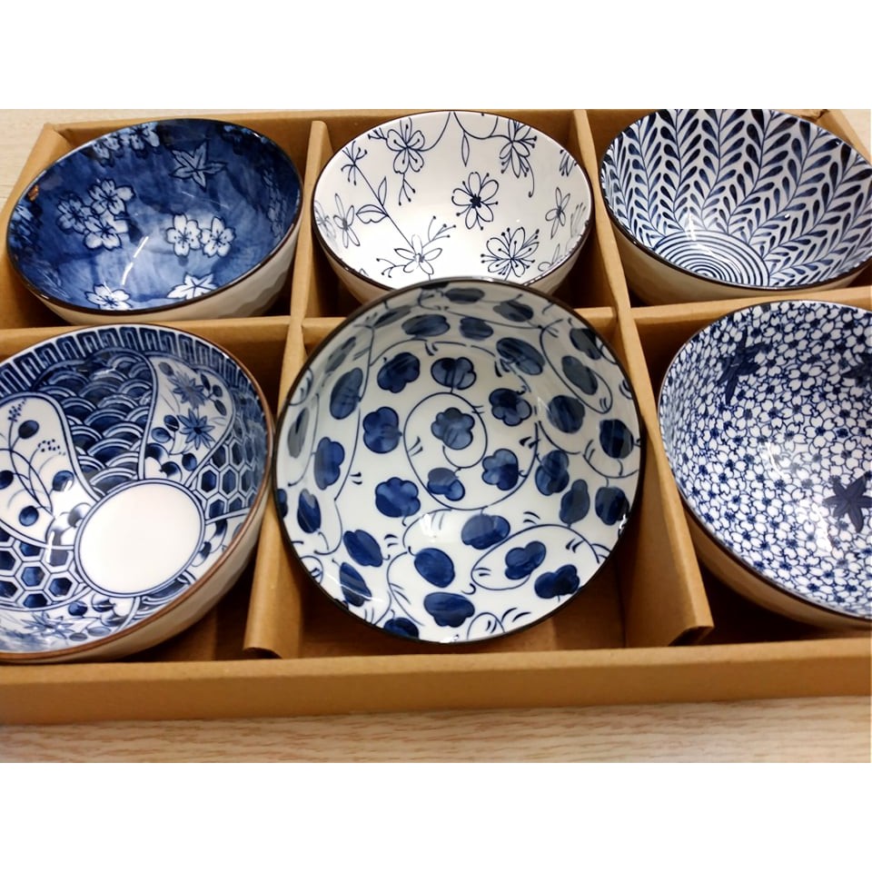 Bộ 6 chén/ bát cơm sứ hoa văn sắc xưa giả cổ phong cách Nhật Bản kèm hộp đẹp không tì vết