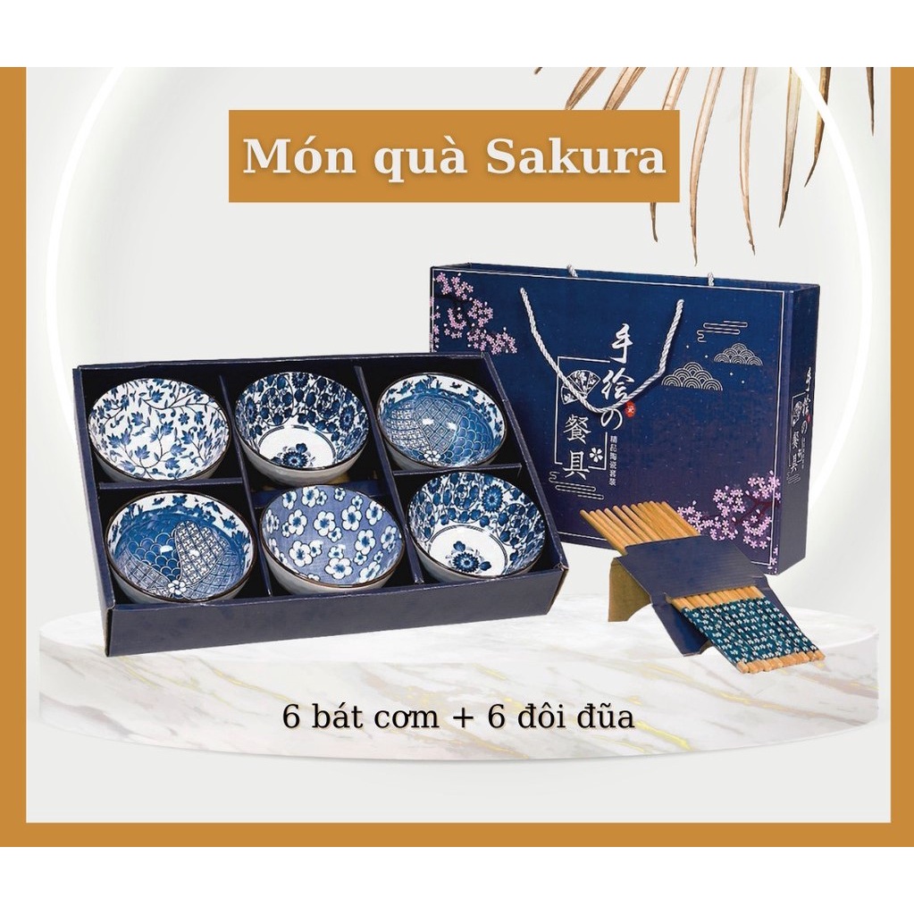 Nhà cửa & Đời sống > Bộ đồ bàn ăn > Tô || Bộ 6 chén/bát sứ và 6 đôi đũa ăn cơm cao cấp, họa tiết Sakura thiết kế theo phong cách Nhật Bản hoa văn đẹp mắtCòn hàng
