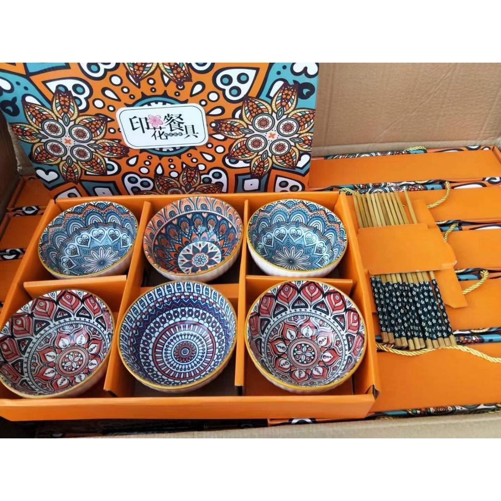 Nhà cửa & Đời sống > Bộ đồ bàn ăn > Tô || Bộ 6 chén/bát sứ và 6 đôi đũa ăn cơm cao cấp, họa tiết thổ cẩm, hoa văn đẹp mắt decor phong cách Bắc ÂuCòn hàng