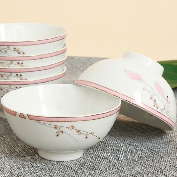 6 chén cơm với họa tiết mềm mại, kiểu dáng tròn gọn, vừa vặn với tay người dùng, dễ cầm và bưng bê.