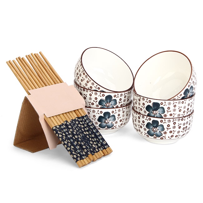 Bộ 6 Chén Đũa Sứ Hoa Văn Nhật Bản Quà Tặng Cao Cấp