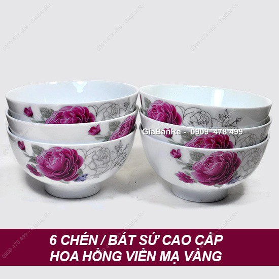 Nhà cửa & Đời sống > Bộ đồ bàn ăn > Tô || Bộ 6 Chén Sứ Mạ Vàng Viền Hoa Hồng Cao Cấp - 6041Còn hàng