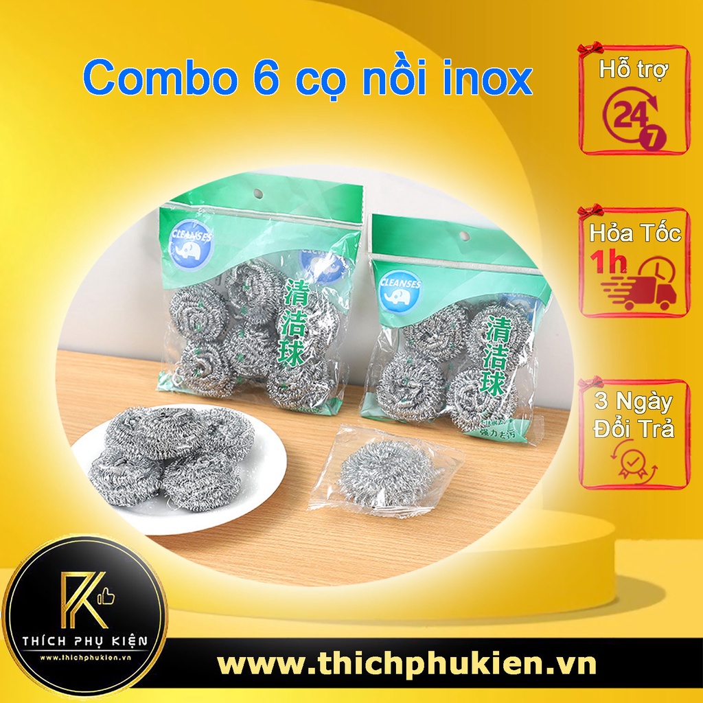 Nhà cửa & Đời sống > Dụng cụ chăm sóc nhà cửa > Miếng bọt biển, miếng chà vệ sinh || 6 Cọ Nồi Inox, Giẻ Sắt Cọ Xoong Nồi, Bùi Nhùi Đánh Xoong Nồi Chống Gỉ SétCòn hàng