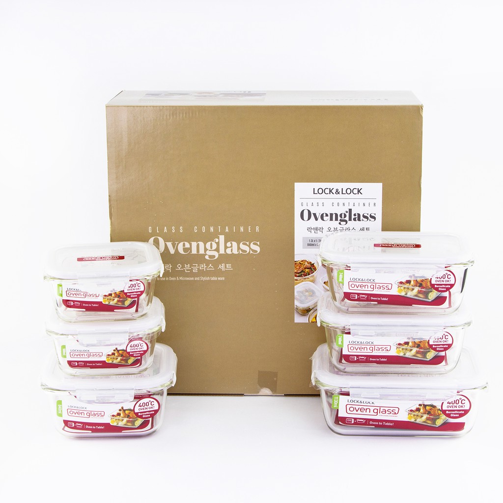 [Mã LIFEHL25 giảm 10% đơn 350K] Bộ 6 hộp thủy tinh Lock&Lock Euro (LLG214x2, LLG225x1, LLG429x2, LLG447x1) - LLG225S6