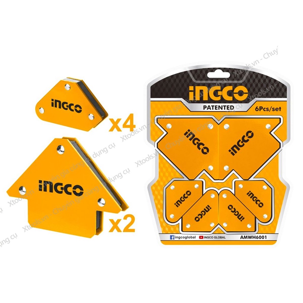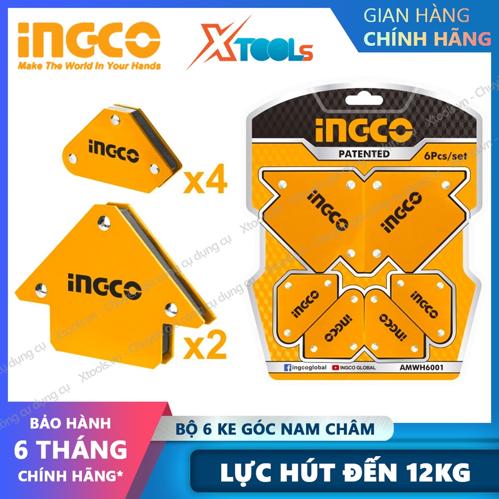 Nhà cửa & Đời sống > Dụng cụ & Thiết bị tiện ích > Dụng cụ > Dụng cụ hàn điện || Bộ 6 ke góc nam châm INGCO AMWH6001 hợp kim siêu bền cứng và nam châm vĩnh cữu Kích thước:3"x2 pcs, 4 pcs ke góc miniCòn hàng
