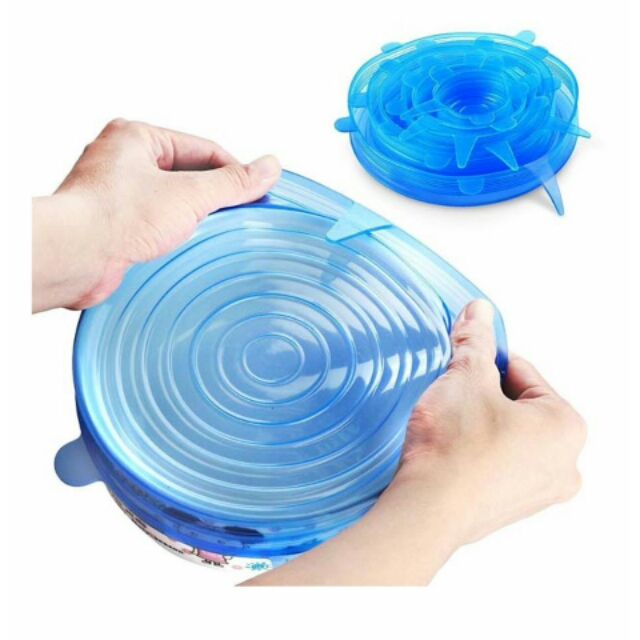 Bộ 6 miếng màng bọc thực phẩm silicon có giãn..Về 2 màu xanh dương , trắng