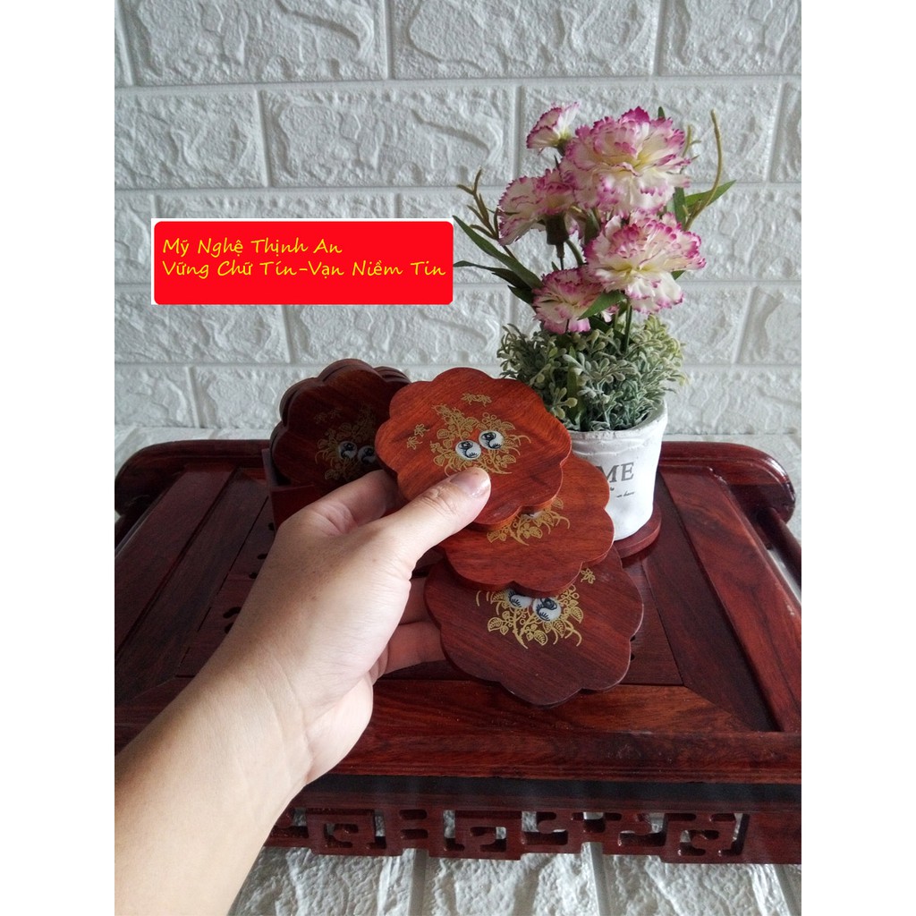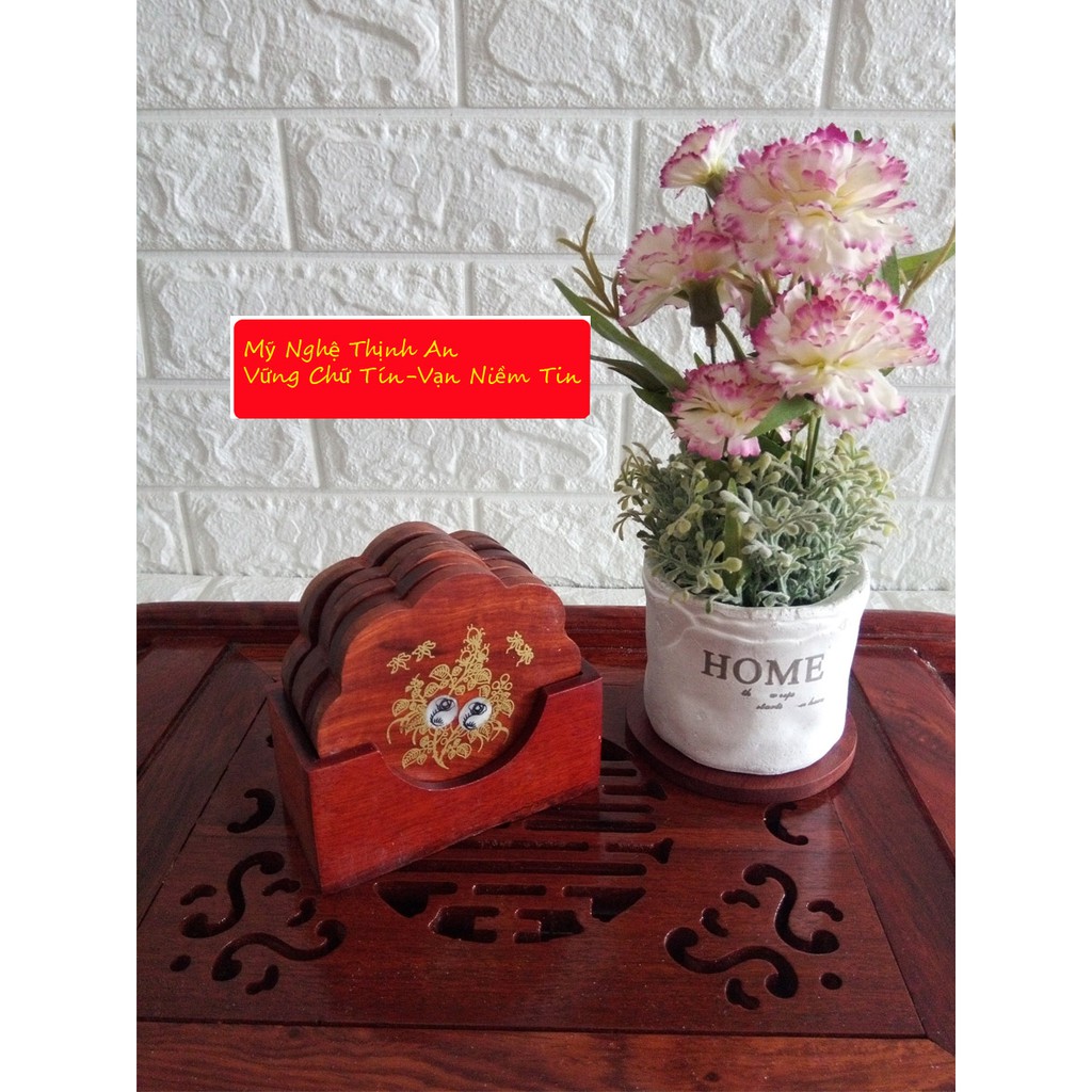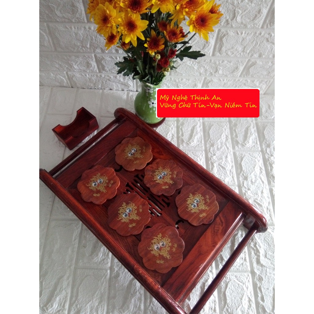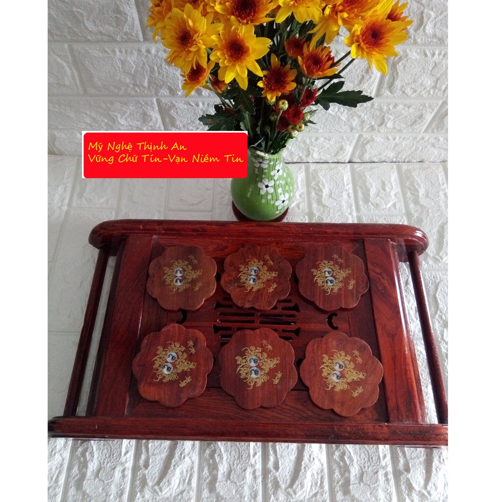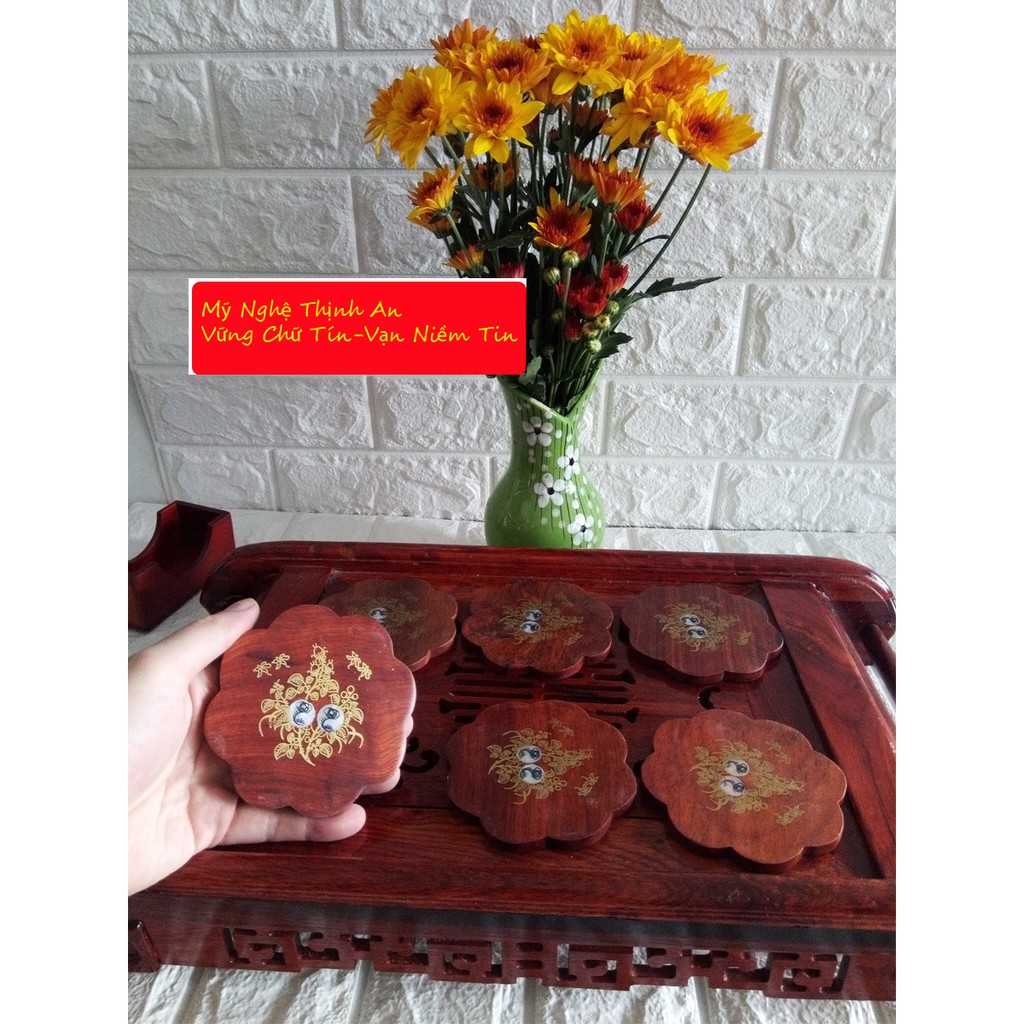 Bộ 6 miếng đế lót ly hình hoa mai gỗ hương khảm hoa - LLMK06
