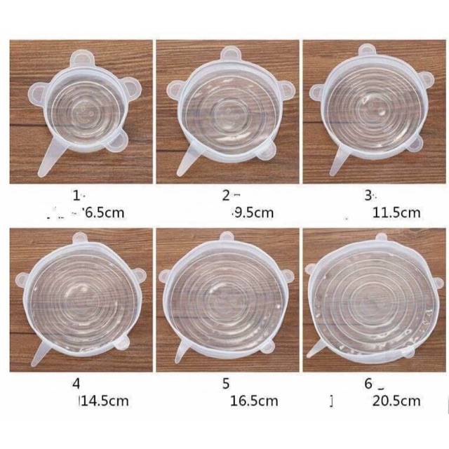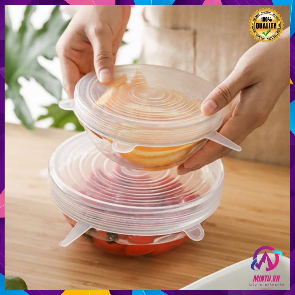 NẮP BỌC THỰC PHẨM SILICONE AN TOÀN - GIẢI PHÁP BẢO VỆ SỨC KHOẺ VÀ MÔI TRƯỜNGBỘ 6 MIẾNG - HÀNG LOẠI 1 (110 gr) DÀY VÀ DAI HƠN CÁC LOẠI HÀNG GIÁ RẺ (100 gr)