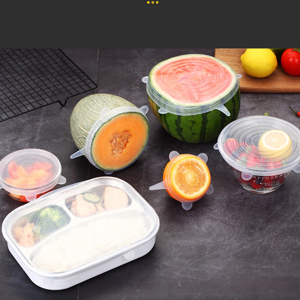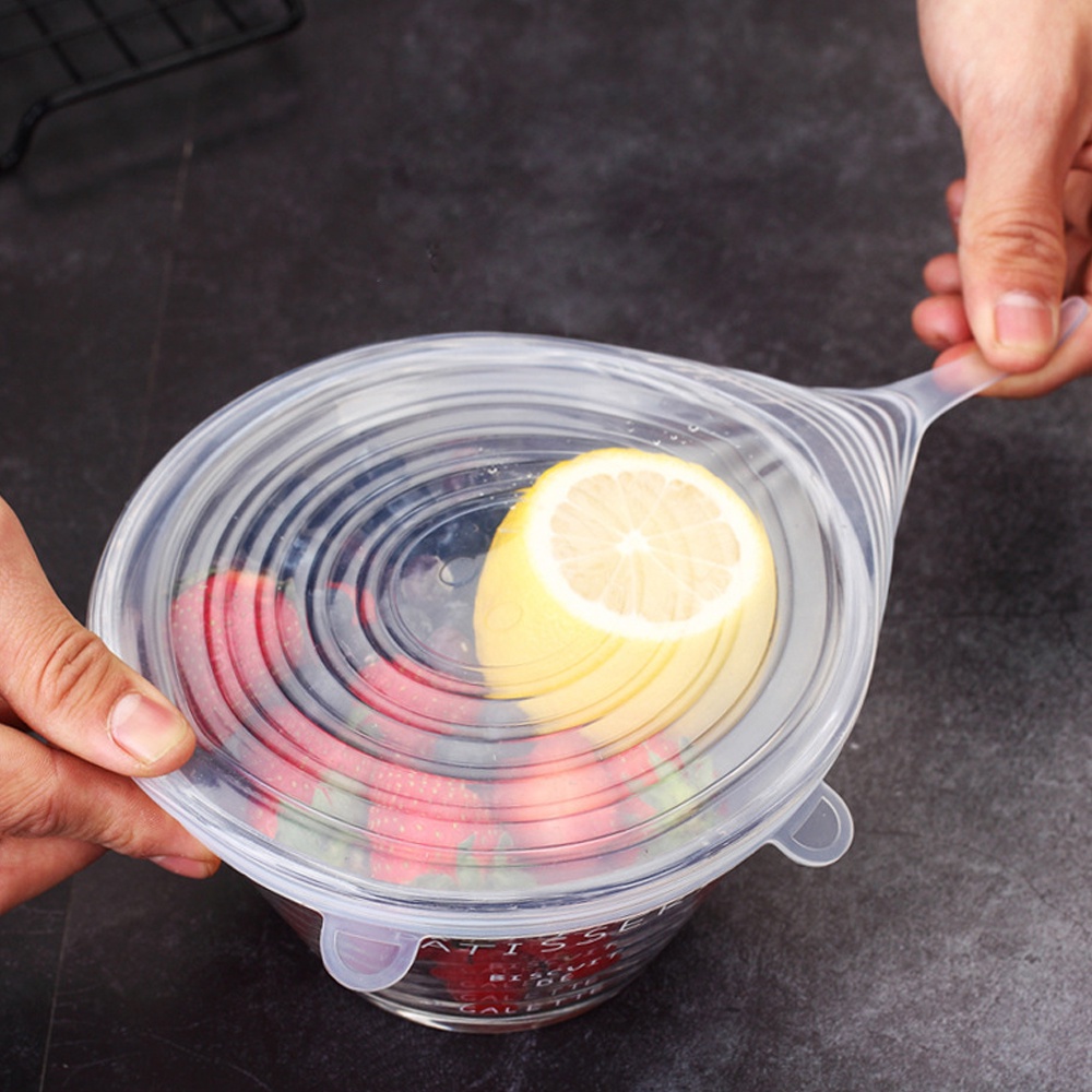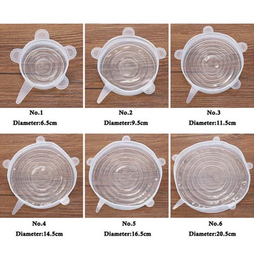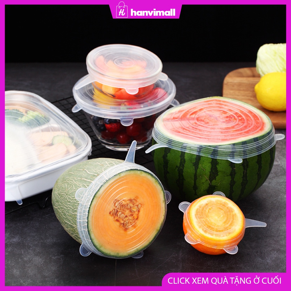 Bộ 6 miếng silicone bọc thực phẩm cao cấp - Nắp đậy màng Silicon bảo quản thức ăn dày dặn độ co giãn tốt